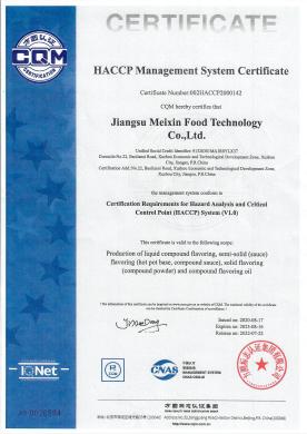 2020 年獲得了質(zhì)量管理體系認(rèn)證證書、危害分析與關(guān)鍵控制點(HACCP)管理體系證書,至今一直有效持有證書。